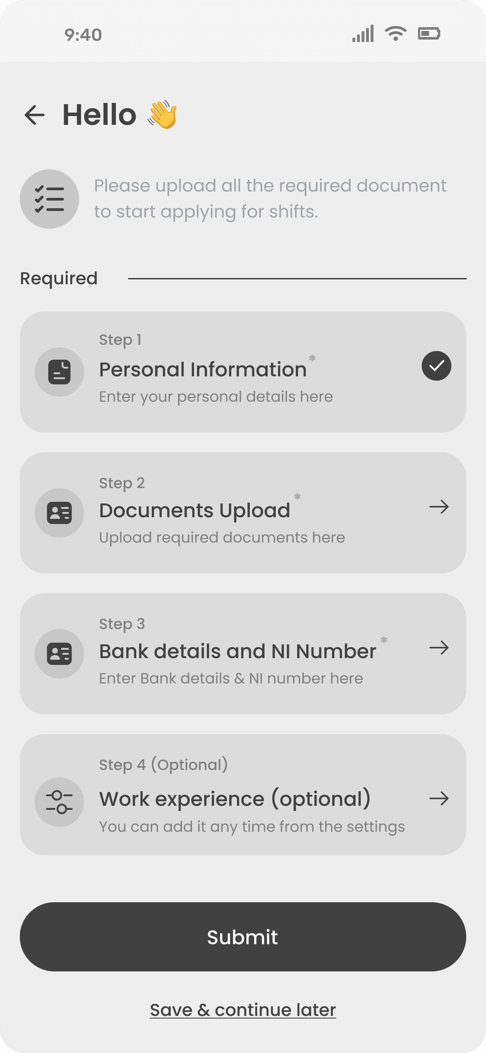 A mobile app (with a web back end Admin panel) to enable Security guards and Door staff to quickly take on flexible work without having to go through a recruitment agency.