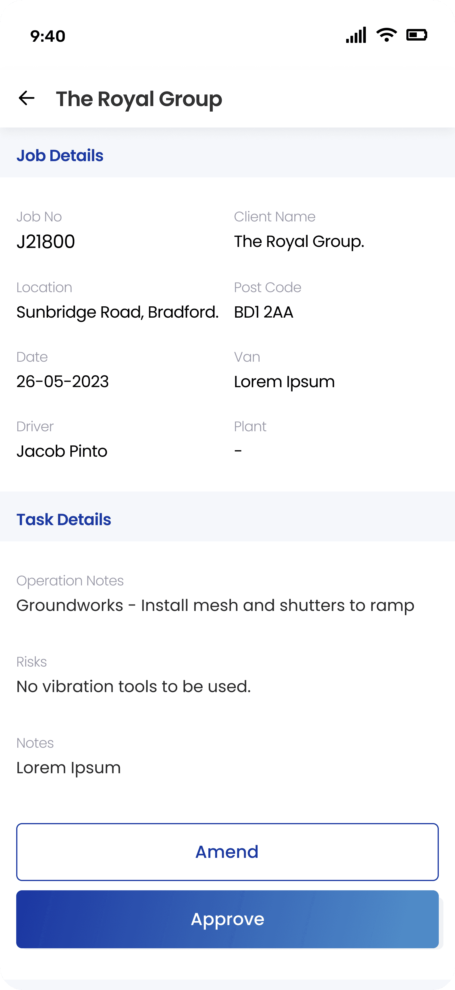 There should be a platform where Shawn can enter all the job related details in App after job completion.
