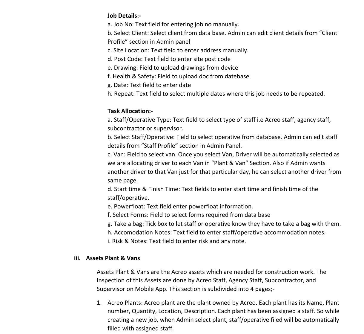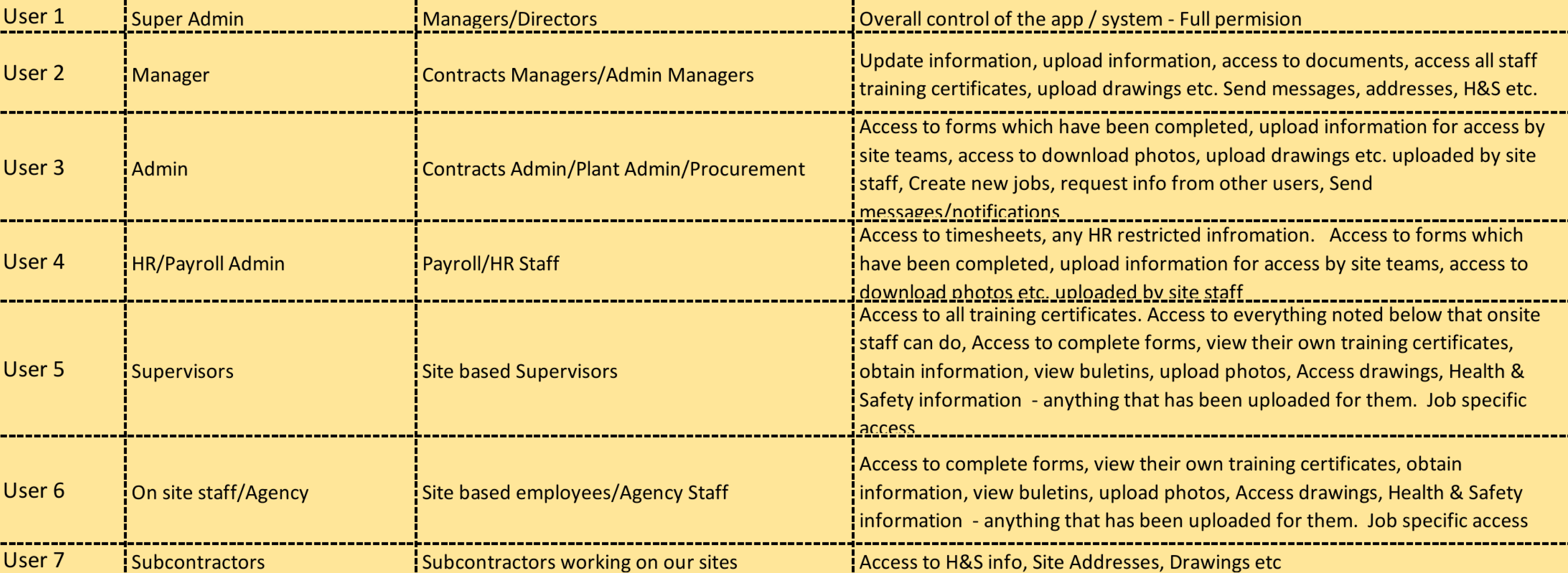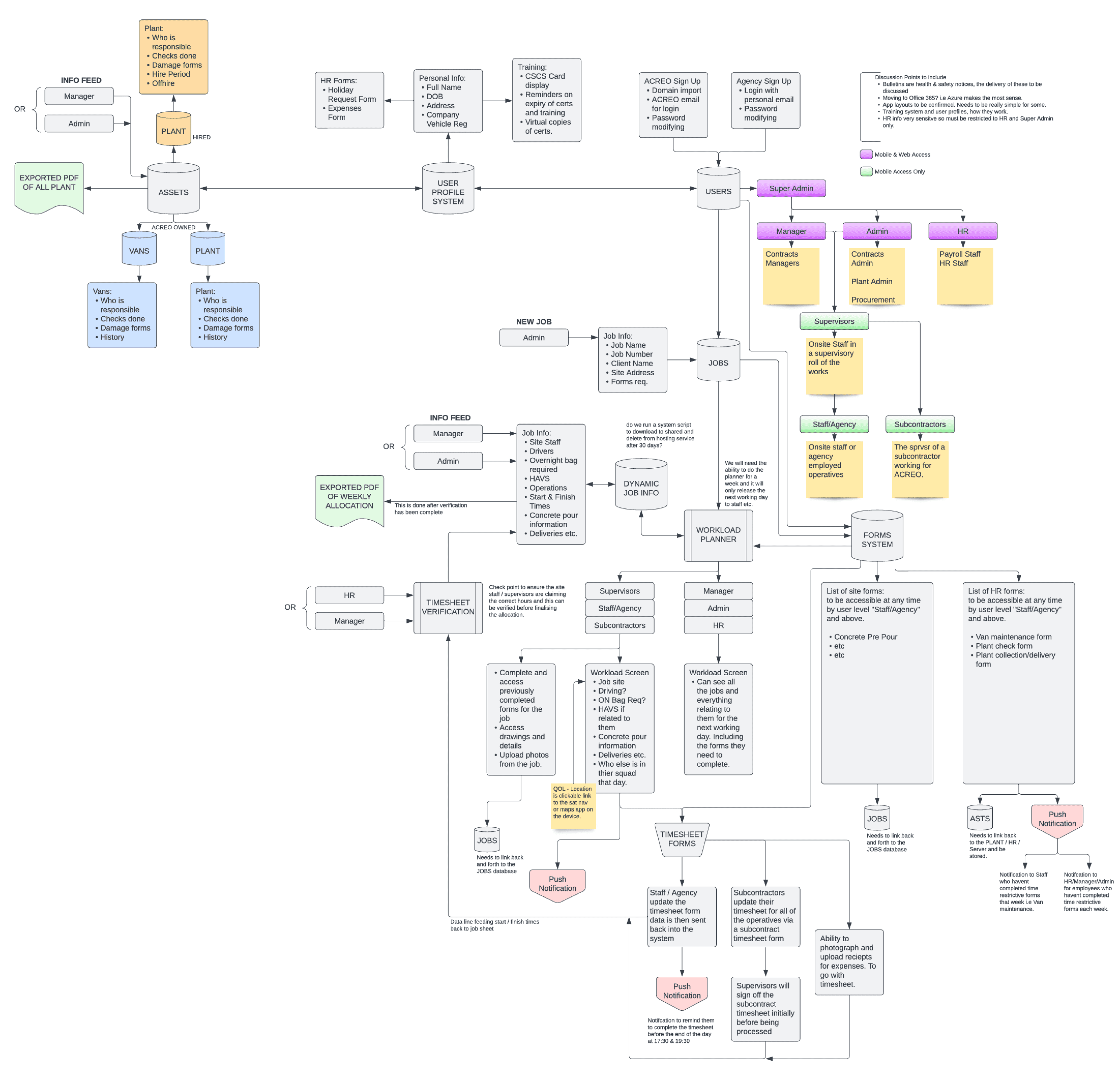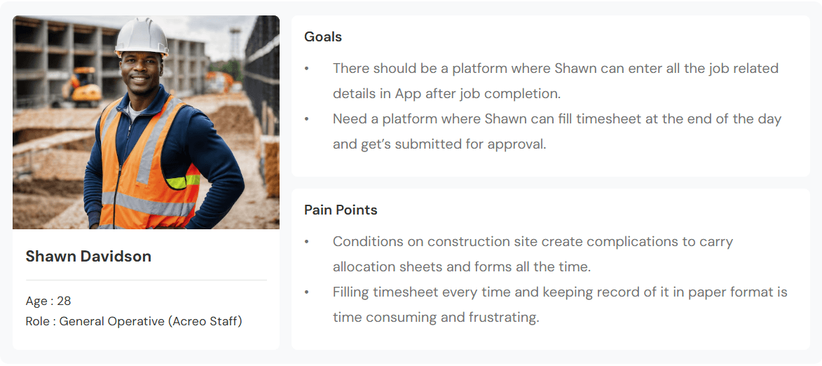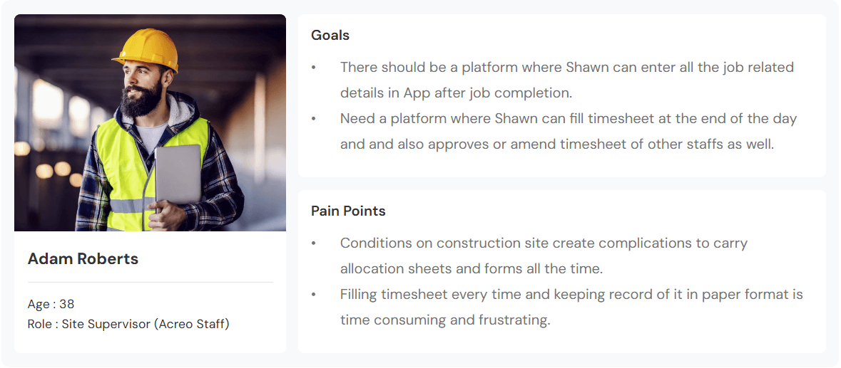 Discussing with client, we defined our user who are currently working in Acreo who will be using Mobile App and Web App. We created list of user, their role in company, and their access in Mobile and Web App.
